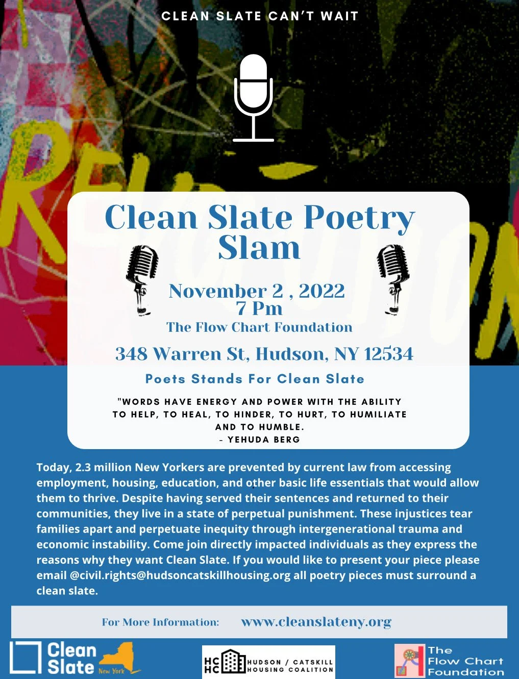 Join us for a poetry slam in collaboration with Hudson Catskill Housing Coalition and Clean Slate NY.